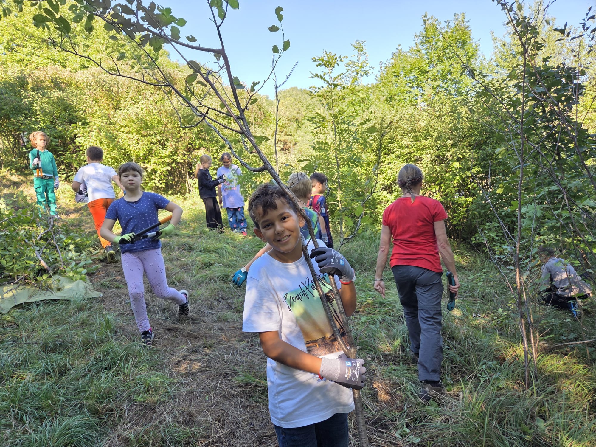 Die Kinder der 4a und der 4c halfen eifrig bei der Eichkogelpflege mit, um unser einzigartiges Naturschutzgebiet in Mödling zu erhalten.